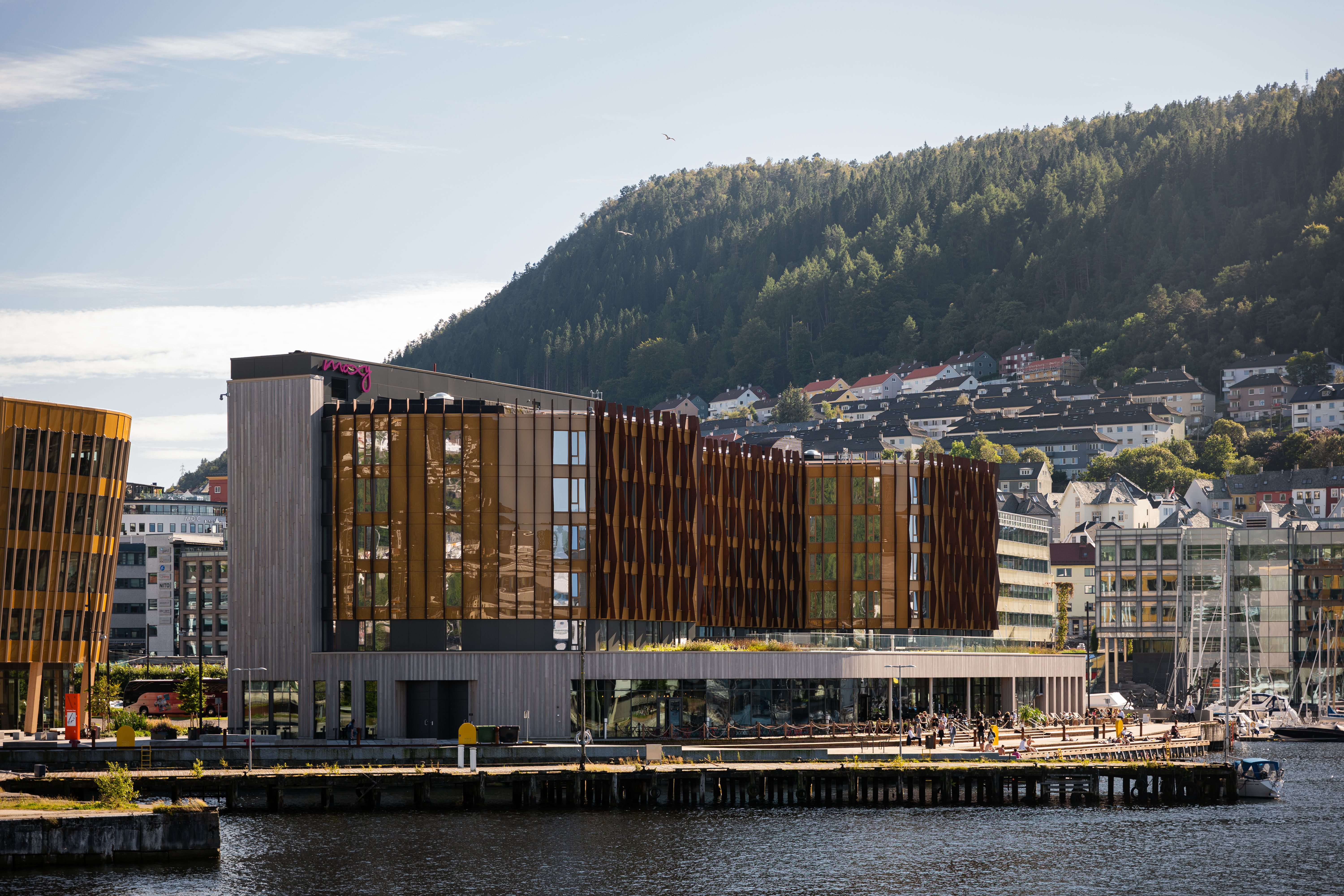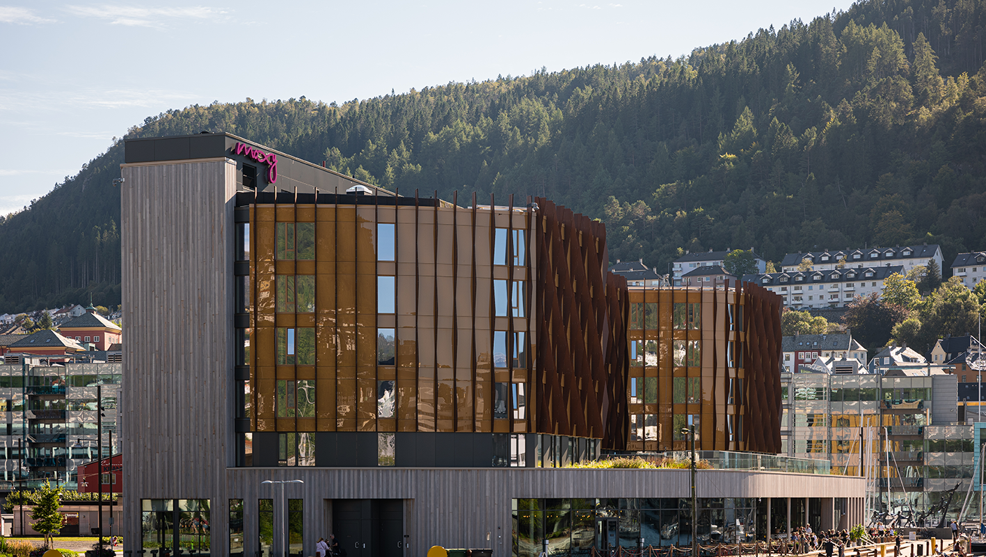 Dette nye flotte hotellet på Viken Brygge i Bergen, med sine 6 easjer og 199 rom sto ferdig i mai 2021. Her har H-fasader Bue Aluminium i oppdrag fra Veidekke Entreprenør, levert glass og aluminiumsfasader, dører og vinduer.